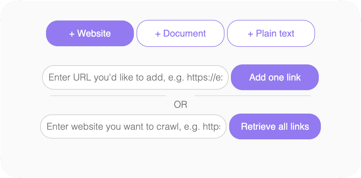 based on your data (URLs, PDFs, documents)